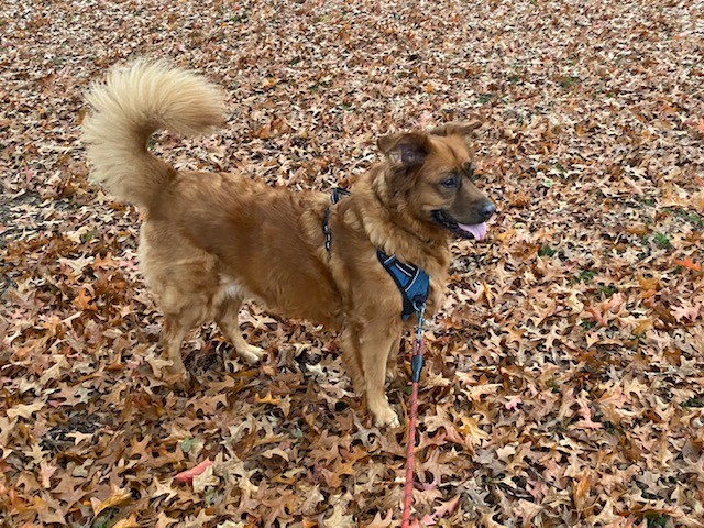 Gene Kelly (#4267) arrived from China in May 2025. This handsome boy is between 4 and 5 years old. He weighs 73 pounds. Gene came to GBR with a traumatic injury to his right eye. The vet says that he has 80% of his vision intact. There is nothing to do other than let it…