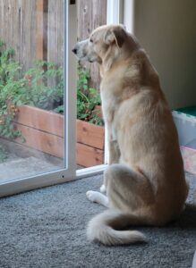 I can be left in the house alone, although I would rather be with my person. Ohh….I have been known to counter surf so it is best to keep food out of paws reach when you’re gone (and I’m a tall boy!). I sleep on my own bed in the house and know to potty outside. I watch Dog TV when she leaves during the day and listen to dog music at bedtime.